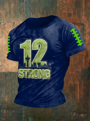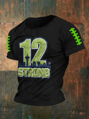 12 Strong Football American Football Team Print T-Shirt, Long Sleeve Football Shirt, Gift Ideas For Football Fans