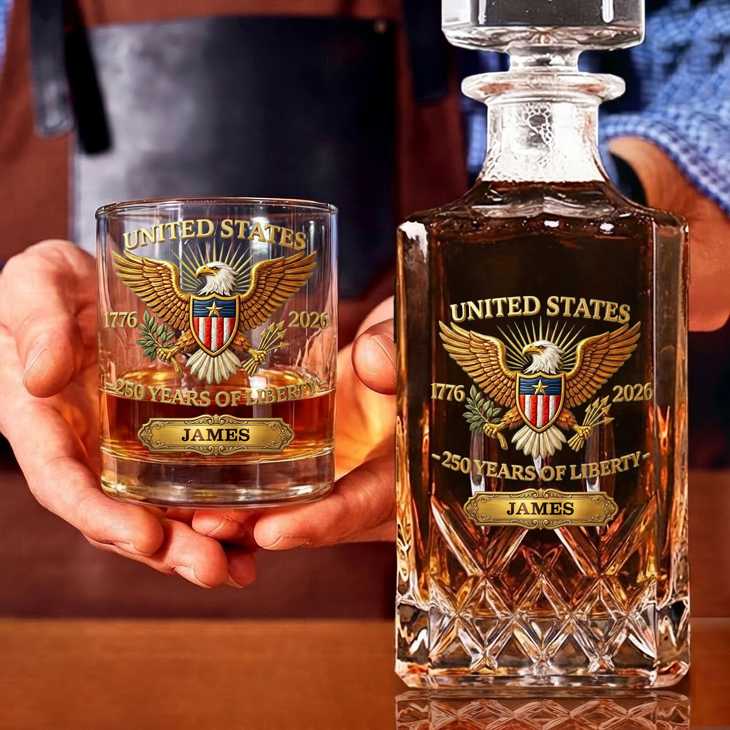 1776-2026 250 Years Of Liberty American Bald Eagle Whiskey Decanter Set, America Patriot Whiskey Glasses