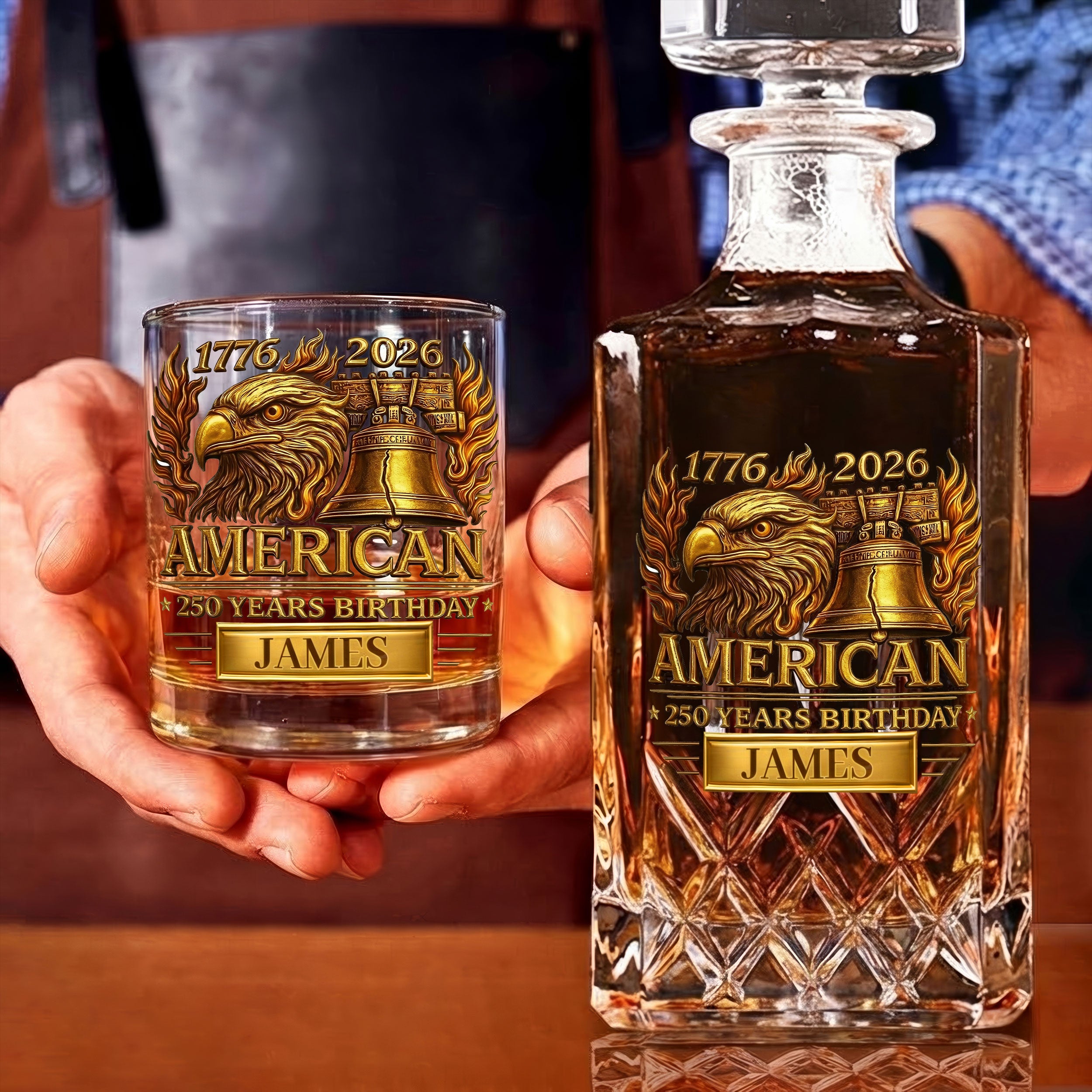 1776-2026 American 250 Years Birthday Whiskey Decanter Set, America Patriot Whiskey Glasses