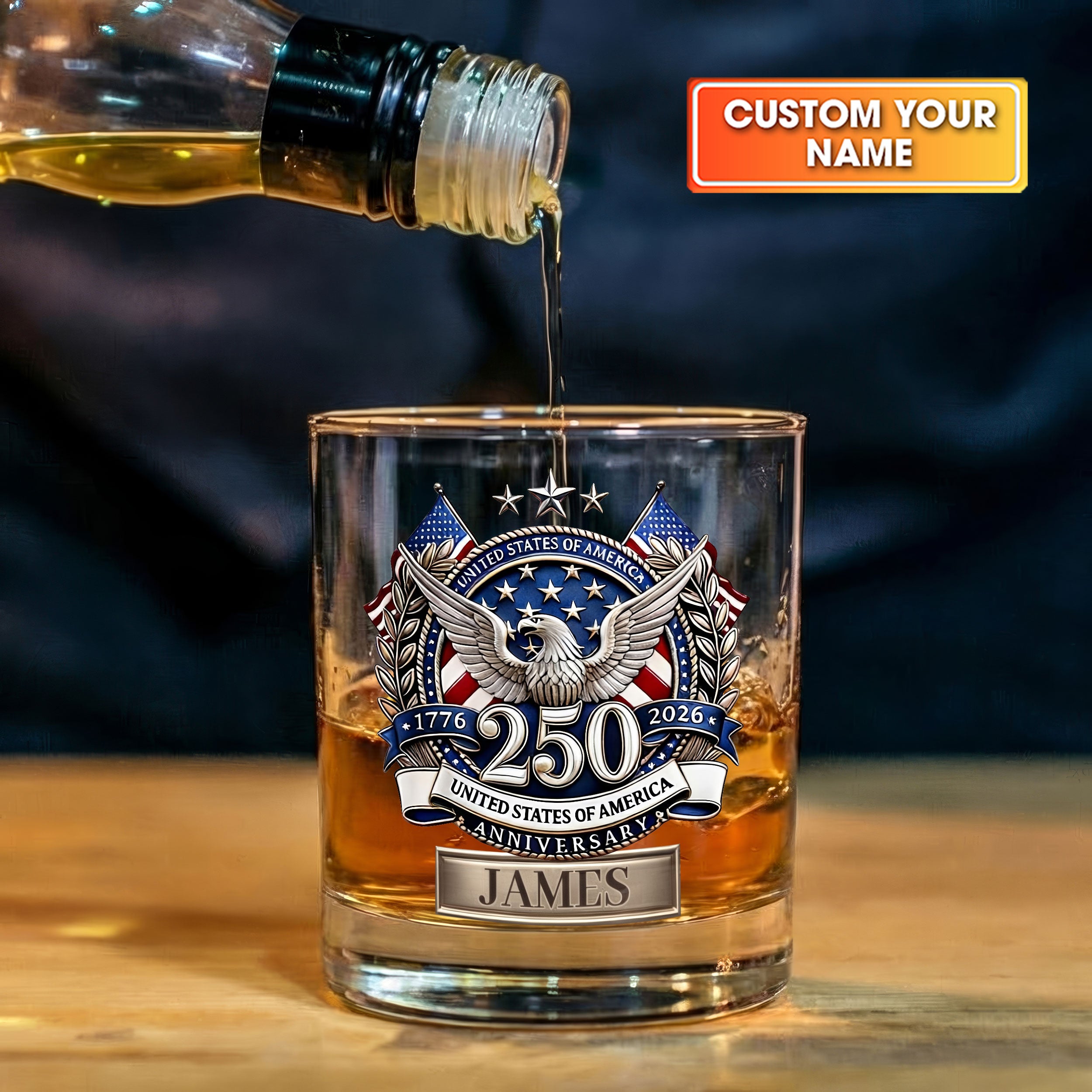250th Anniversary 1776-2026 Whiskey Decanter Set, America Patriot Whiskey Glasses, Luxury Whiskey Glass