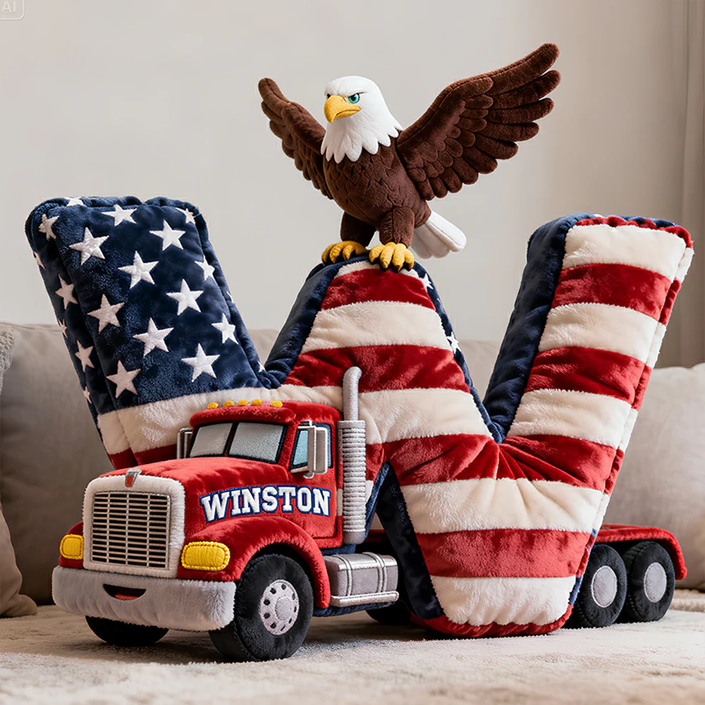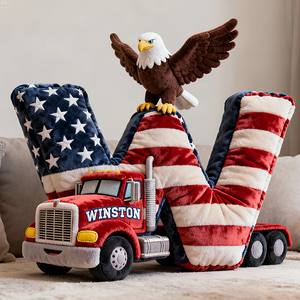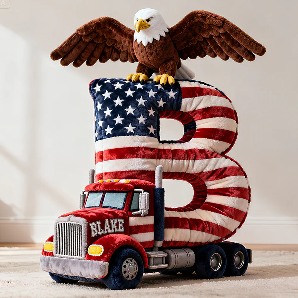 America Flag Print Alphabet Truck Custom Shaped Pillow, 250th Anniversary Patriotic Pillow