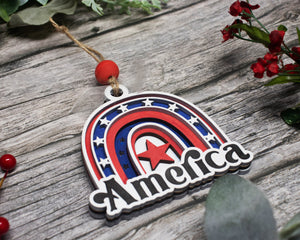 America Rainbow Christmas Ornament, Patriotic Ornament, American Flag Ornament, 3-Layer Wooden Ornament