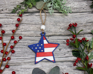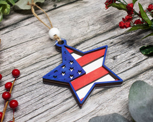America Star Christmas Ornament, Patriotic Ornament, American Flag Ornament, 3-Layer Wooden Ornament