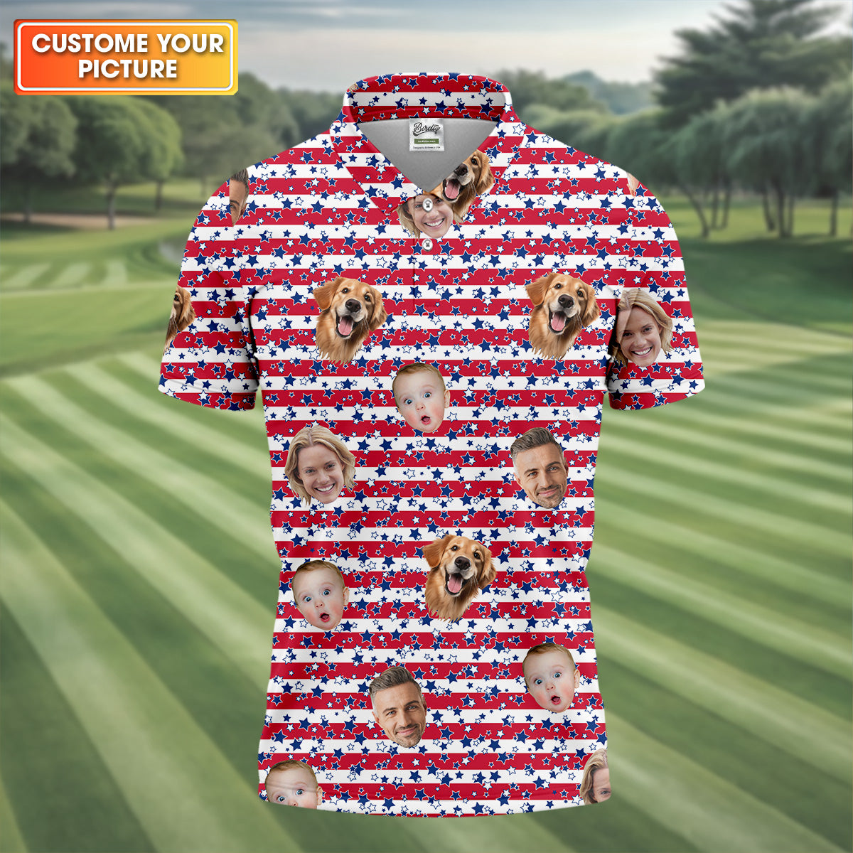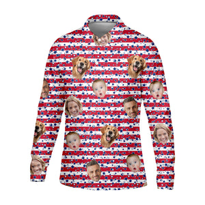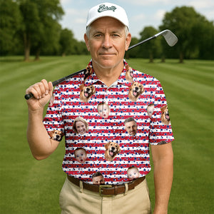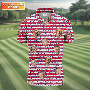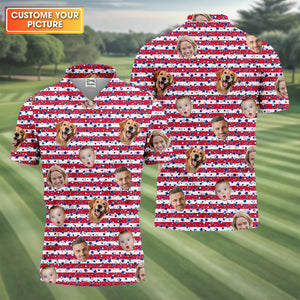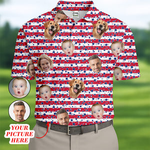American Flag Golf Shirts, Custom Shirts With Faces, Men's Golf Polo Shirt, Men's 4th Of July Shirts