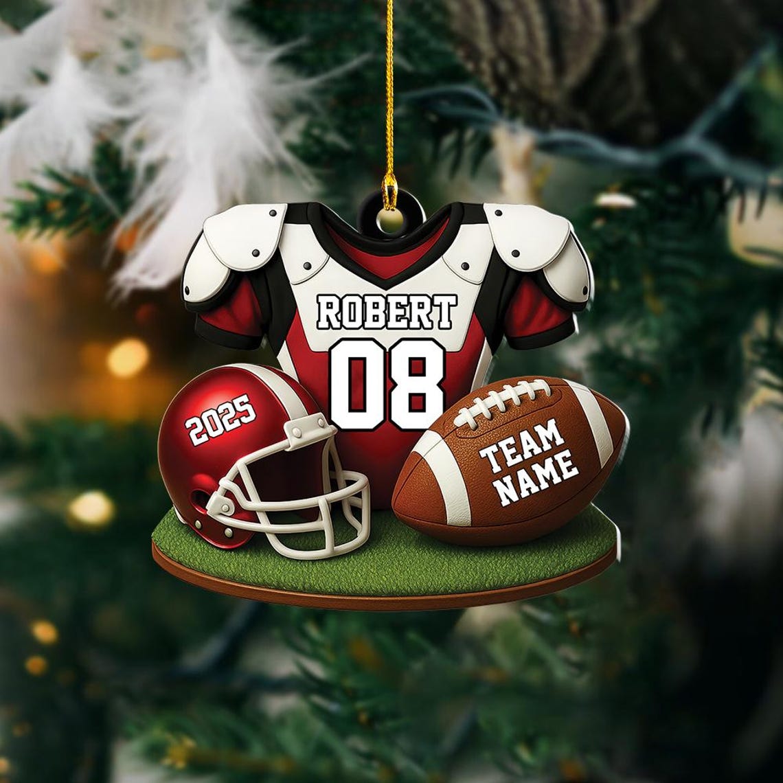 American Football Christmas Ornament, Custom Football Player Christmas Keychain, Football Christmas Gifts