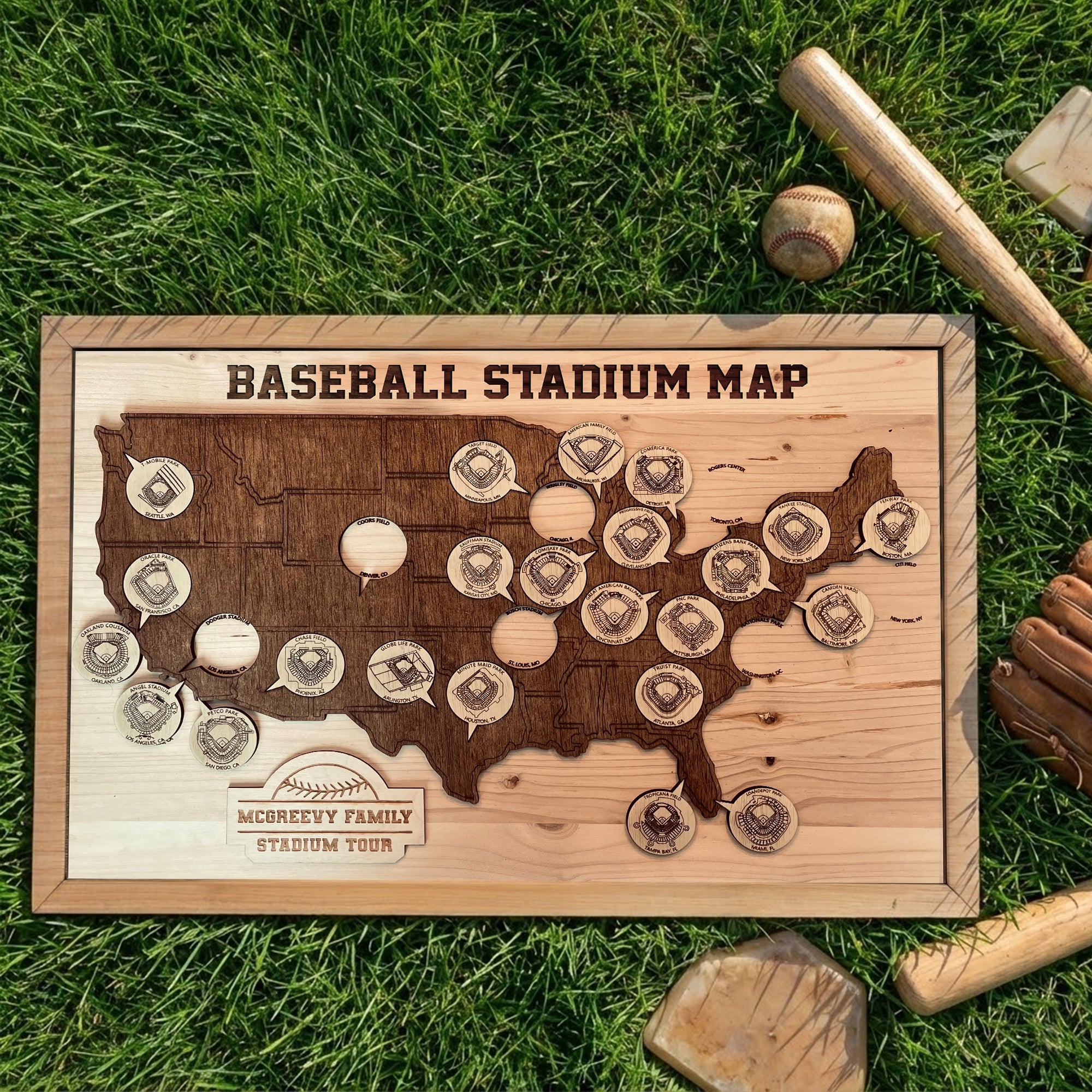Baseball Stadium Map, Wooden Wall Map, Baseball Tracker, Gift For Baseball Lover