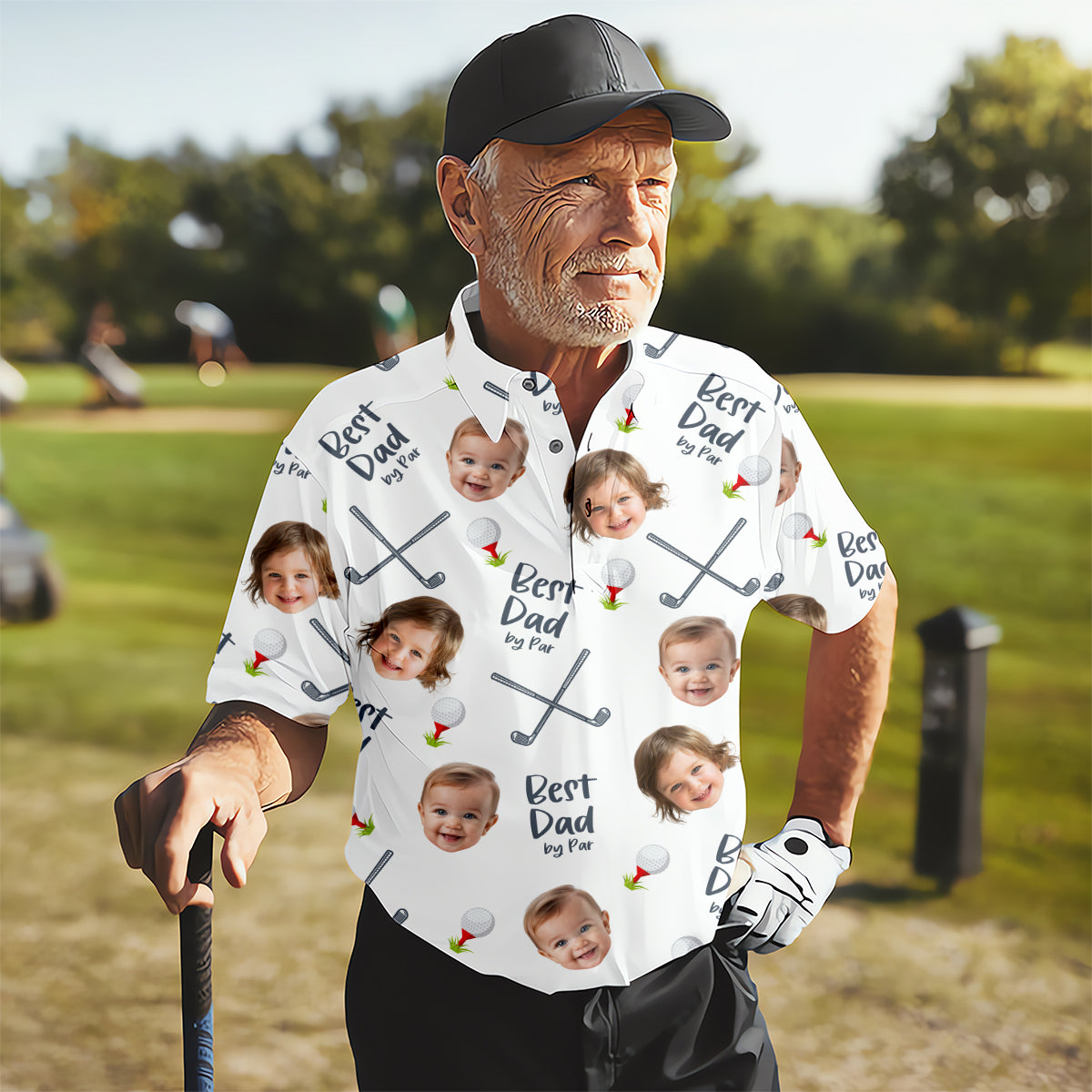 Best Dad By Par Custom Face Golf Shirt, Personalized Golf Shirt, Shirts for men, Gift for Dad