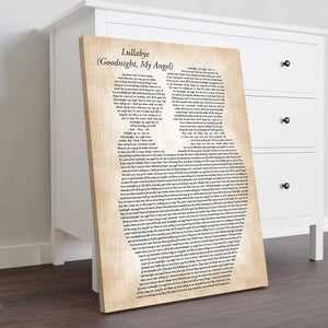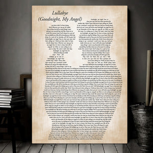 Capture the deep emotional connection between a parent and child with this beautifully designed art print featuring lyrics from Billy Joel’s tender ballad, "Lullabye (Goodnight, My Angel)." This piece celebrates the bond between father and child, making it the perfect addition to a nursery, child’s room, or family space....
