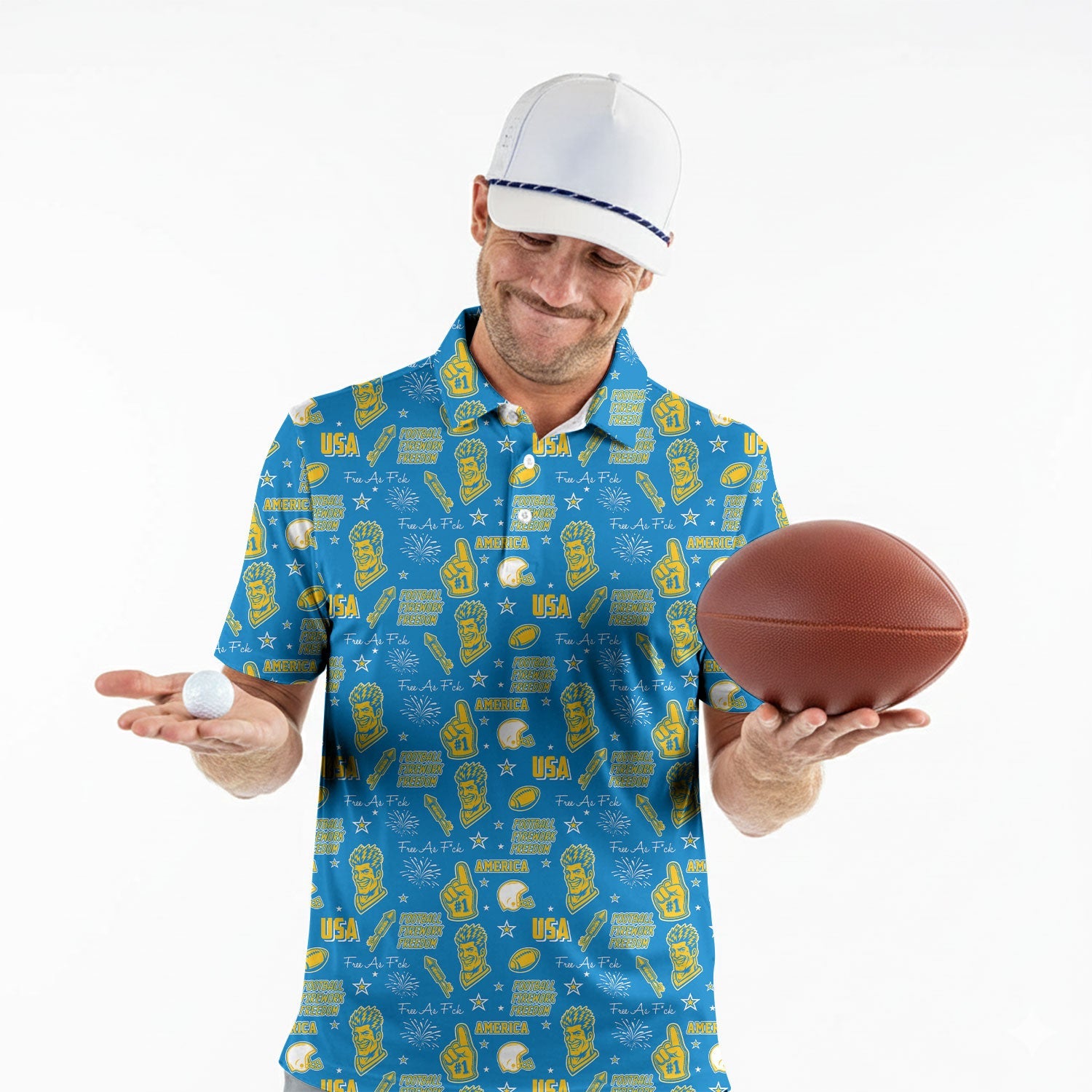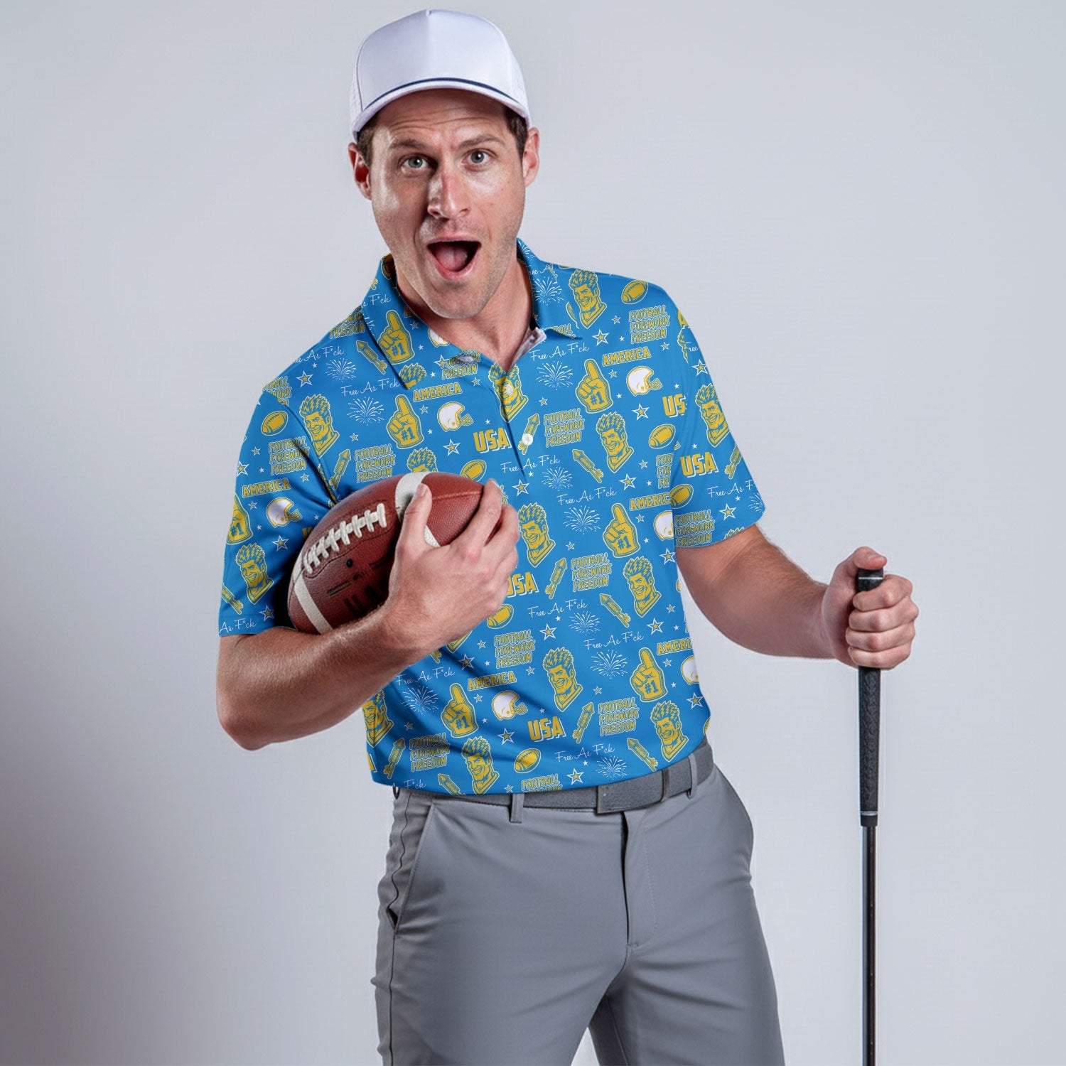 Bolt Man Powder Blue Sunshine Gold Sport Polo, American Football League Gift Ideas For Football Fans