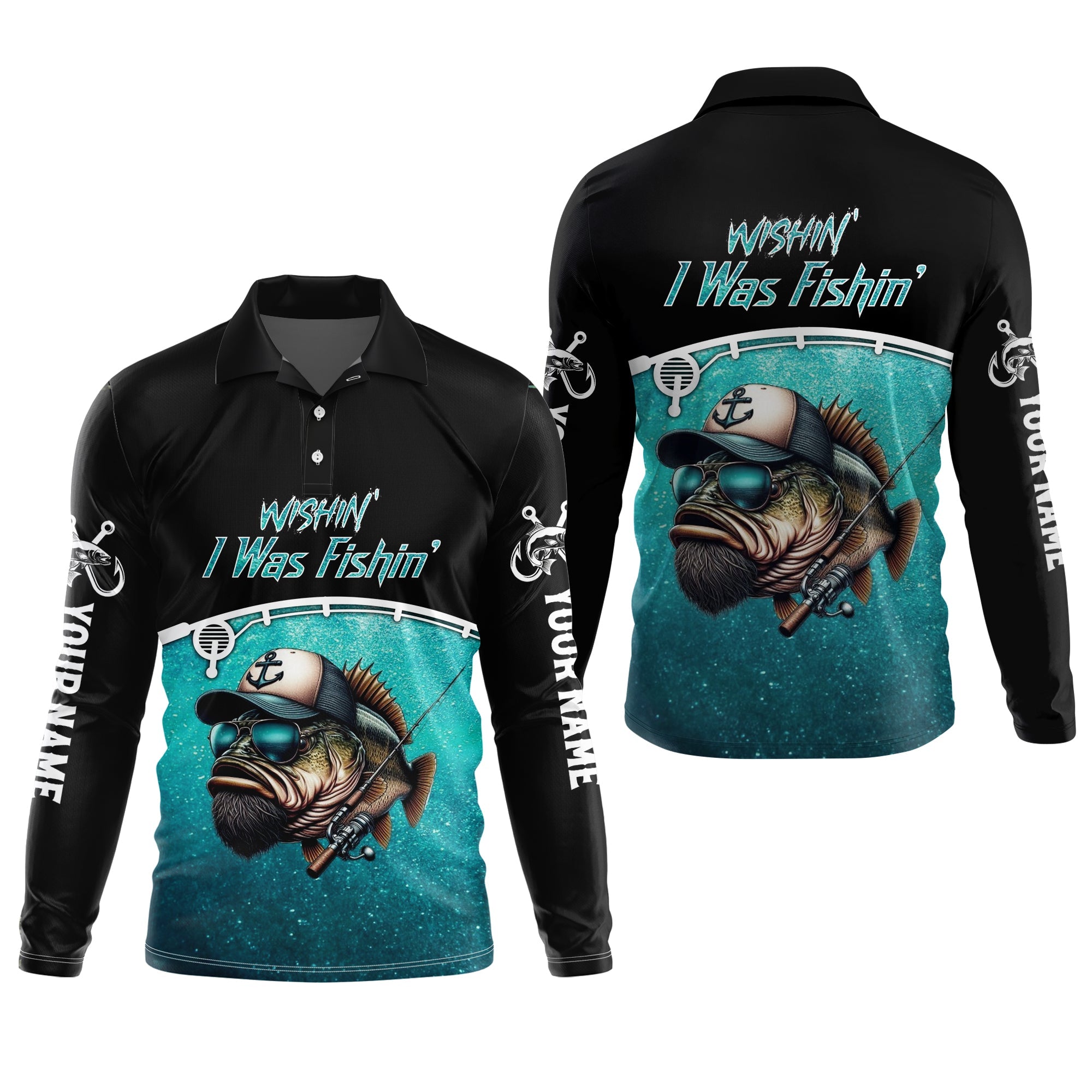 Wishin I Was Fishin UV Shirts For Men, Long Sleeve Fishing Shirts, Fishing UPF Shirts, Funny Fishing Shirt