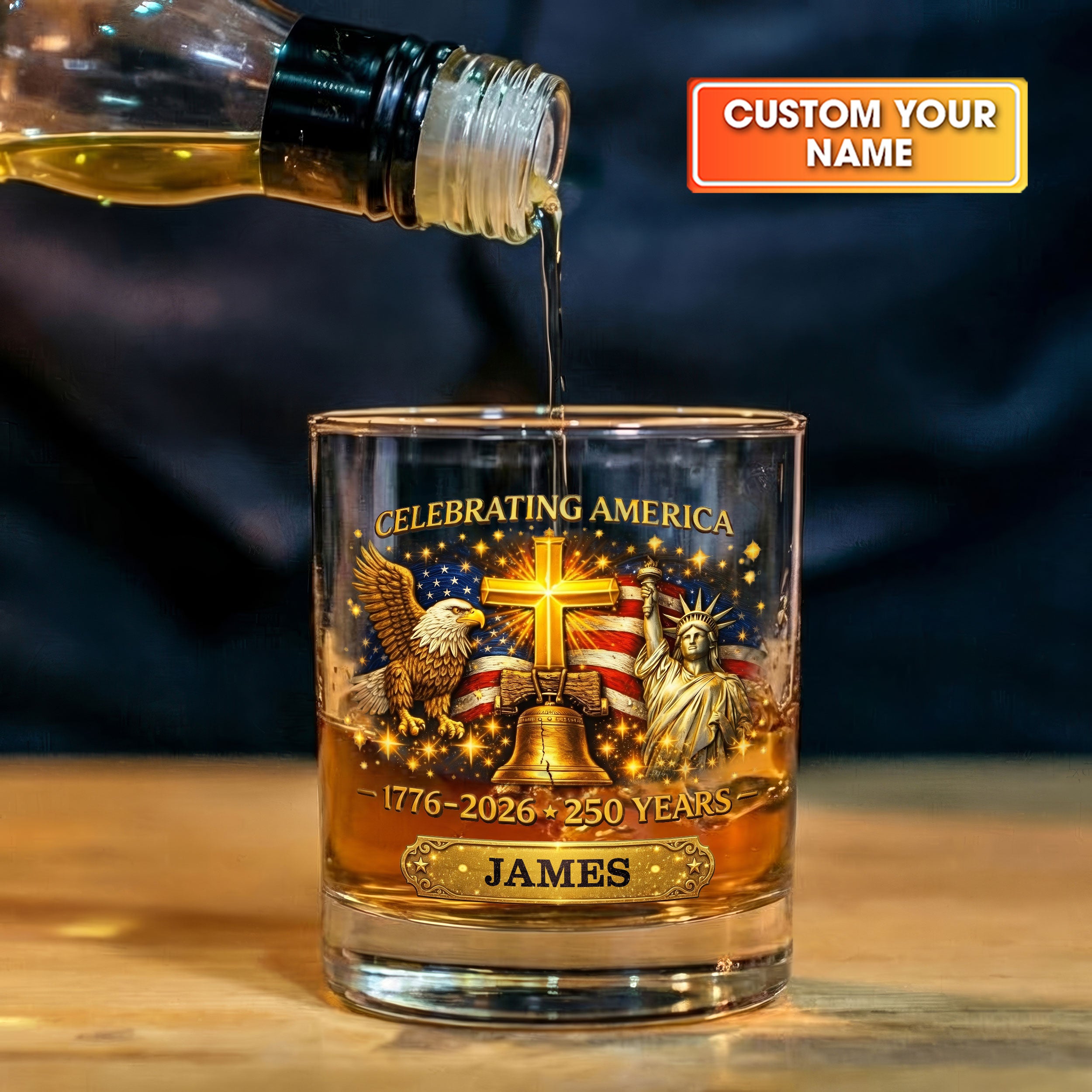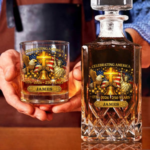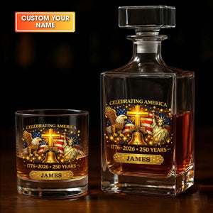 Celebrating America 1776-2026 250 Years Christian Theme Whiskey Decanter Set, America Patriot Whiskey Glasses