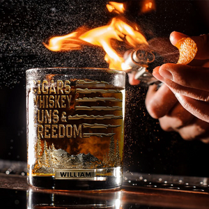 Cigars Whiskey Guns And Freedom Custom Whiskey Glass, Personalized Whiskey Glasses, Gift For Whiskey Lover