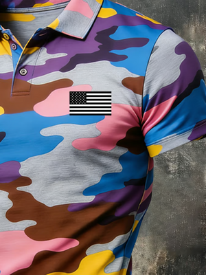 Colorful Camo America 250 1776-2026 Patriotic Golf Shirt, 4th Of July Golf Shirt, Golf Shirts For Men