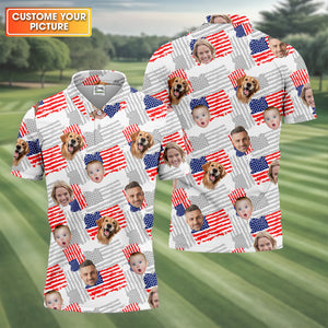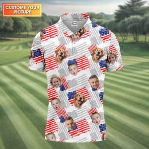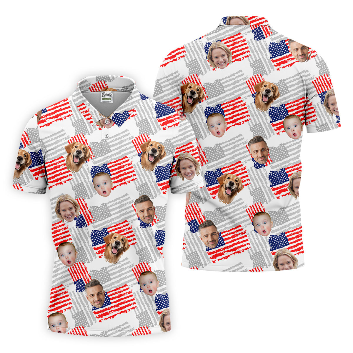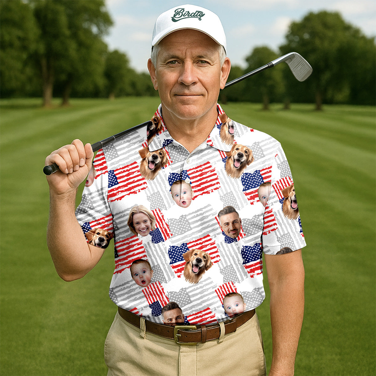 Custom American Flag Shirts With Faces, Funny 4th Of July Shirt, USA Golf Shirt, Men's Golf Polo Shirt