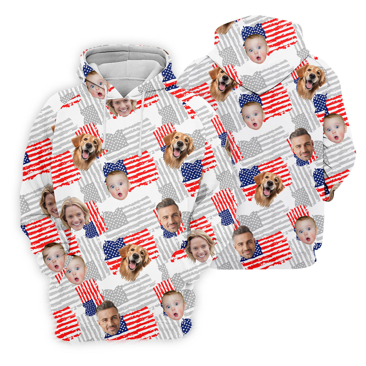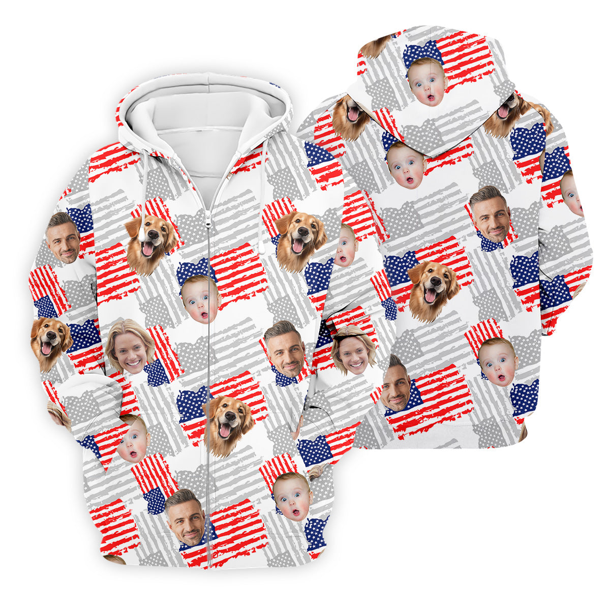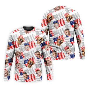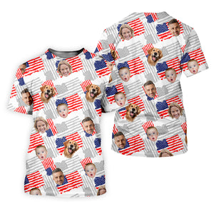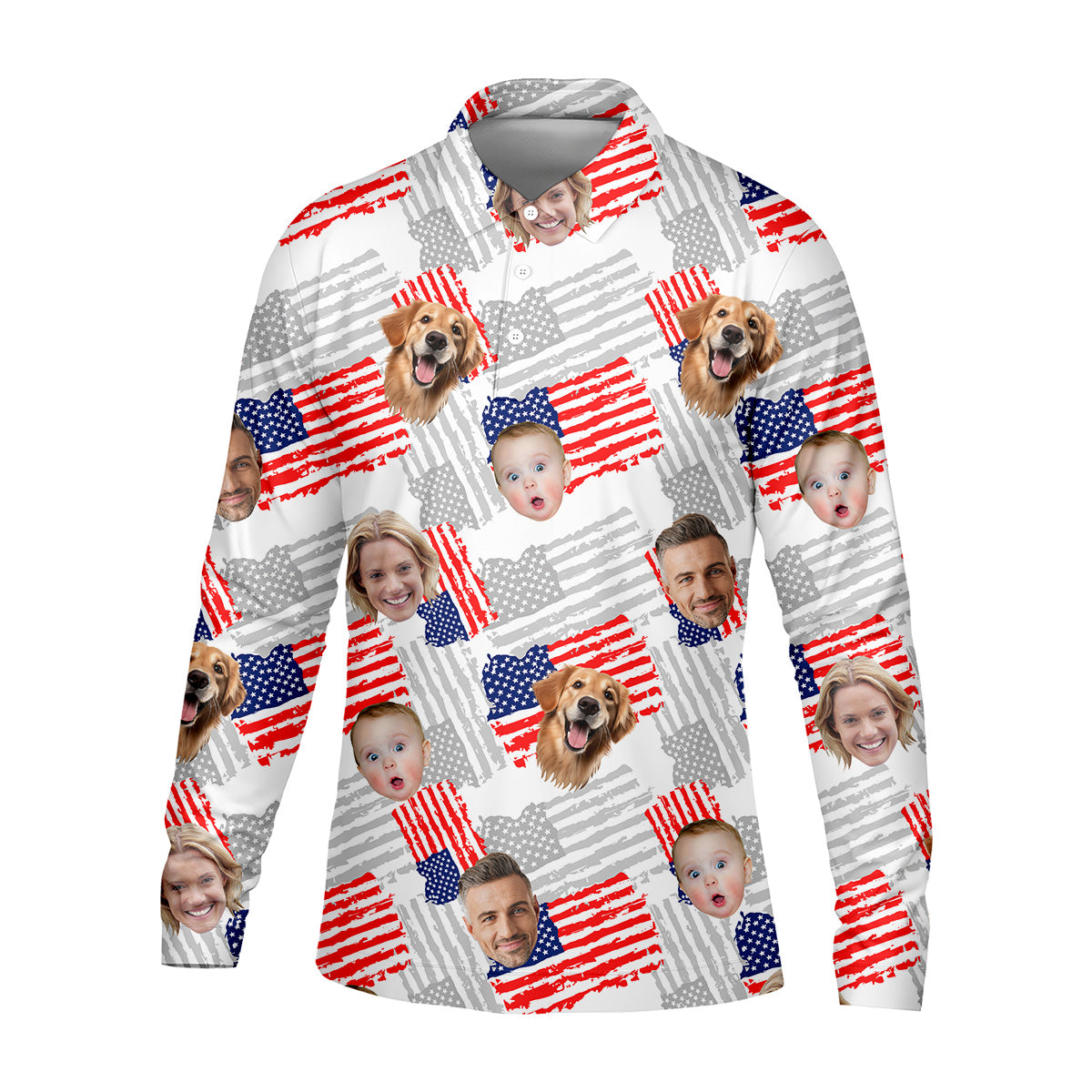 Custom American Flag Shirts With Faces, Funny 4th Of July Shirt, USA Golf Shirt, Men's Golf Polo Shirt