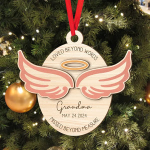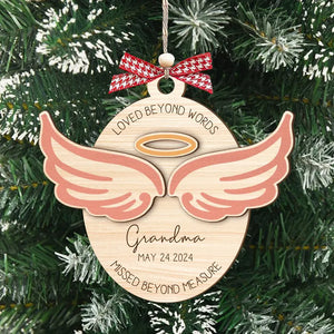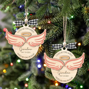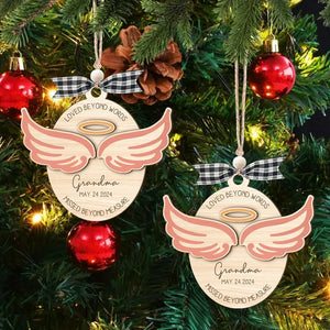 Custom Angel Wings Memorial Christmas Wood Ornament, Loss Of Loved One, Remembrance Gifts