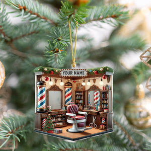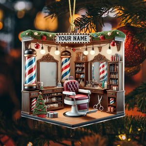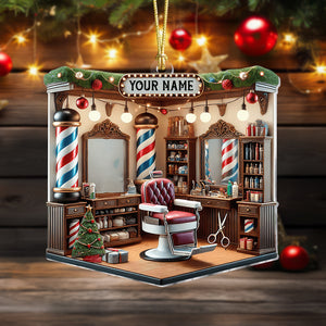 Custom Barber Shop Christmas Acrylic Ornament, Gift For Barber