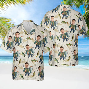 Custom Face Bass Fishing Hawaiian Shirt, Fishing Lover Summer Shirt, Hawaii Shirt, Summer Party Gift, Fishing Hawaii Shirt, Gift Fisherman