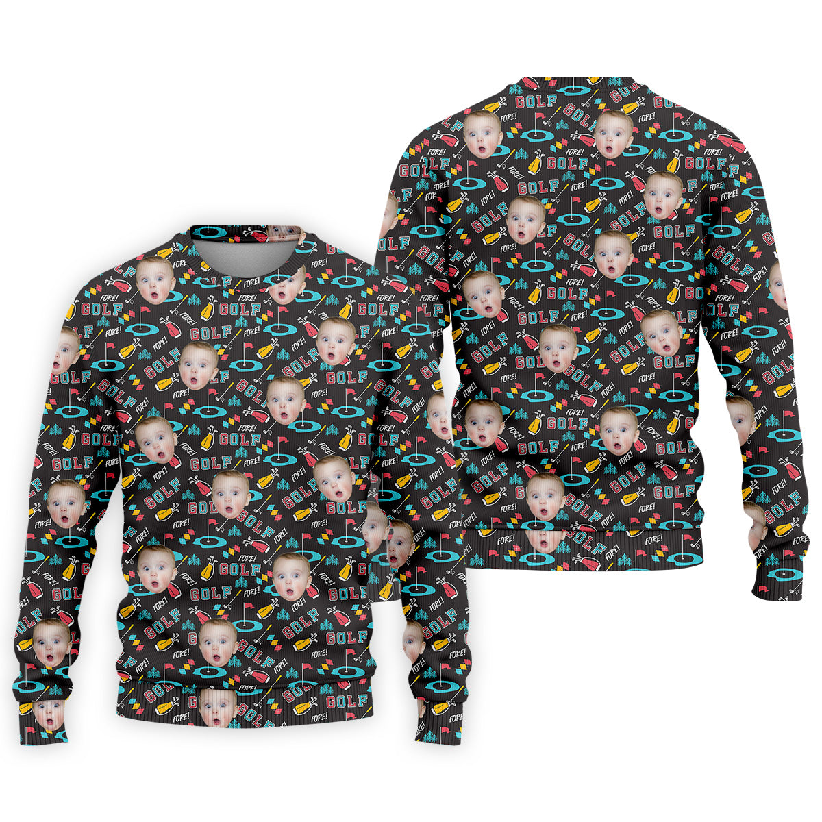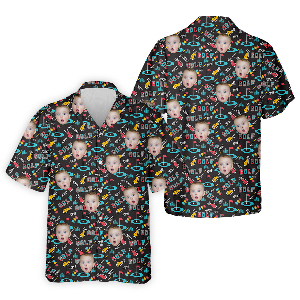 Custom Face Golf Shirt, Black Funny Golf Polo Shirt, Golf Gift For Dad