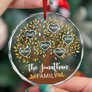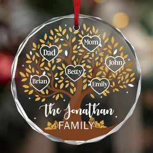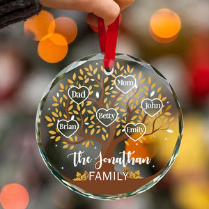 Custom Family Tree Name Christmas Glass Ornament, Personalized Gift For Family