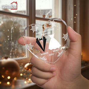 Custom First Christmas Married Glass Ornament, Anniversary Wedding Gifts