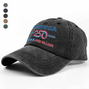 Custom Name 4th of July America 250 Washed Denim Baseball Cap, American Patriotic Gift