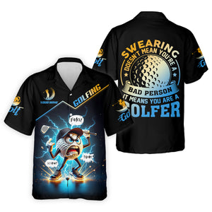 Meet the Swearing Doesn't Mean You're A Bad Person Custom Men's Golf Polo Shirt, Dad Golf Gift – a shirt so bold it makes argyle cry in the corner. Designed for golfers who'd rather make a fashion statement than follow dress codes, this polo is your ticket to turning heads, raising eyebrows, and maybe distracting your buddies just enough to win a few holes. (We’re not saying it’s cheating... we’re saying it’s strategy.)