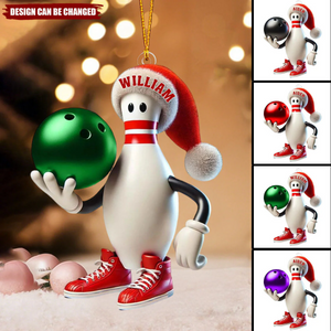 Custom Name Bowling Set Acrylic Ornament, Bowling Guy Cool Christmas Ornament, Bowling Christmas Unique Gift