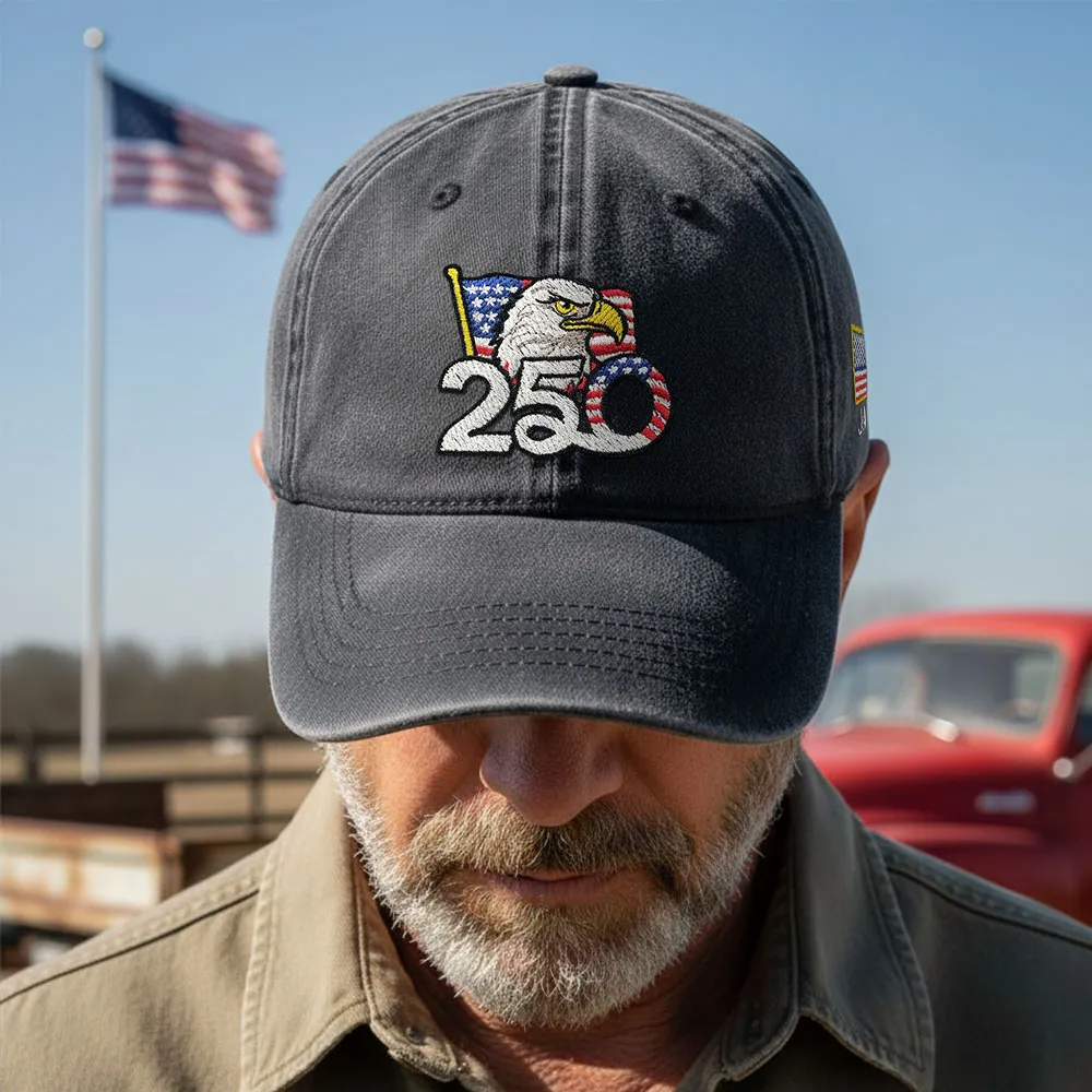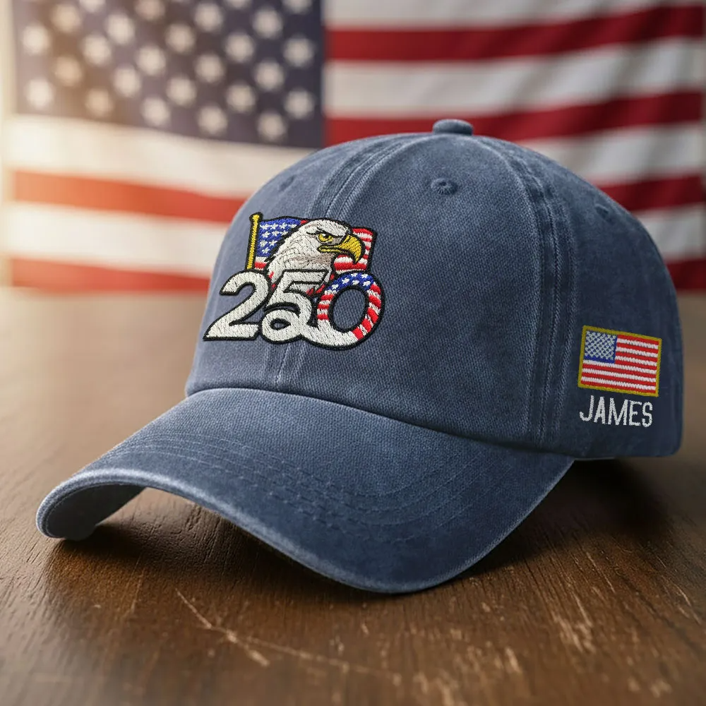Custom Name Eagle American Flag Print Hat, 250th Anniversary Patriot Hat, Classic Cap