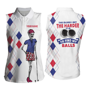 Custom Name The Older I Get The Harder It Is Argyle Skull Polo Shirt, Golf Shirt For Women, Ladies Golf Polos