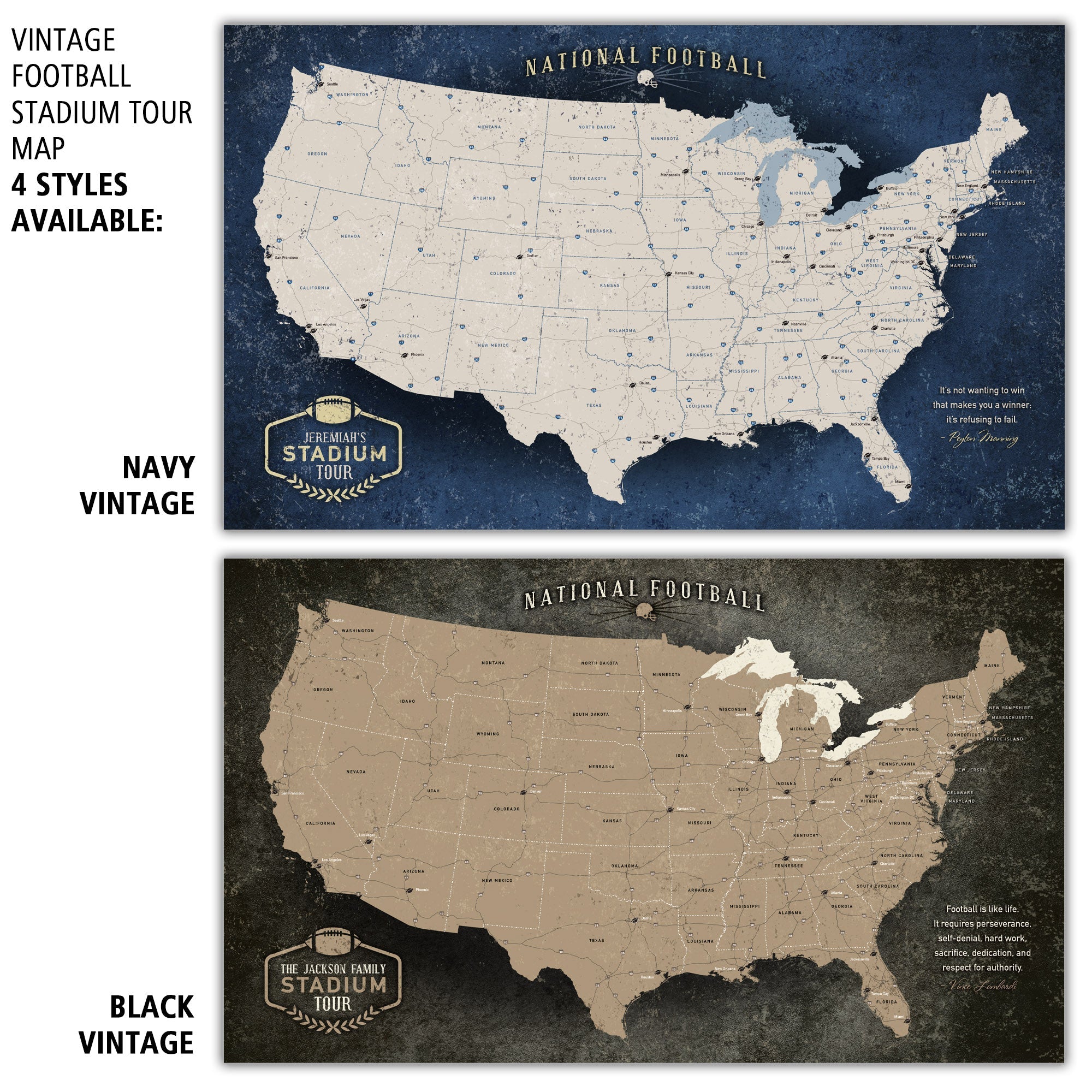 Custom Vintage Football Stadium Tour Map Canvas Wall Art, Gift For Football Lovers