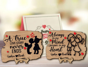 Cute Couple Wooden Sign – Valentine's Day Sign – Couple in Love 2-Layered Wood Plaque – Romantic Gift for Couples