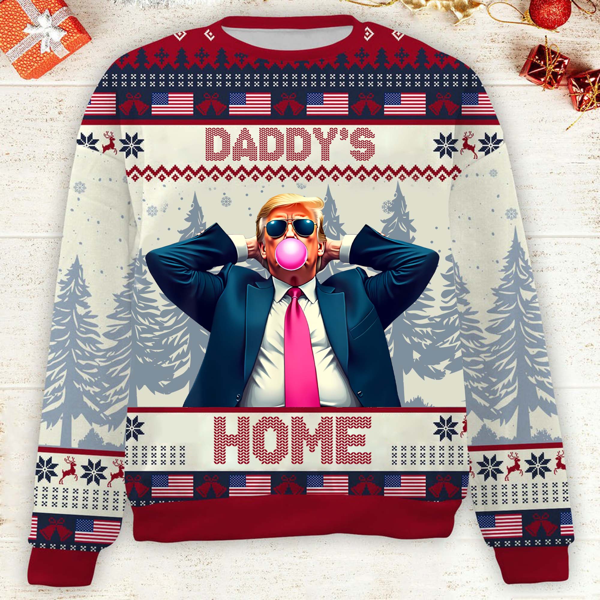 Daddy's Home Funny Humorous Trump2024 Christmas Ugly Sweater, Funny Political Shirts