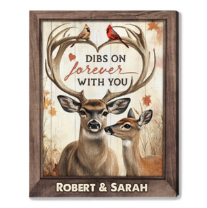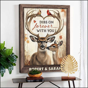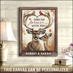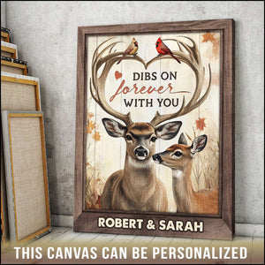 Dibs On Forever With You Custom Deer And Cardinal Canvas Wall Art, Anniversary Wedding Gift