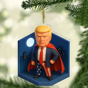 Donald Trump Funny Super Hero Acrylic Ornament, Patriotic Christmas Acrylic Keychain, Funny Xmas Ornaments