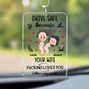 Drive Safe Because Your Wife F*cking Loves You Personalized Rear View Mirror Accessory, Couple Valentines Gift