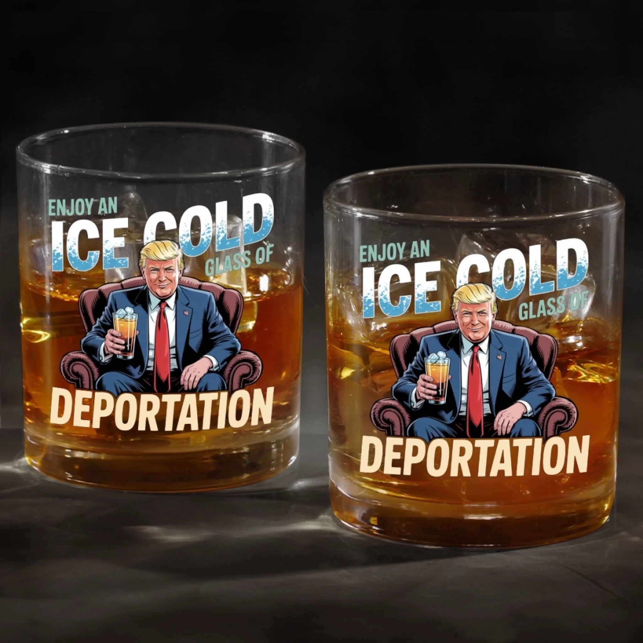 Enjoy An Ice Cold Glass Of Deportation Trump US Patriotic Whiskey Glass, Bold Moves Unique Whiskey Glass