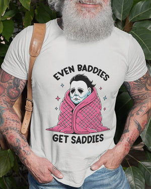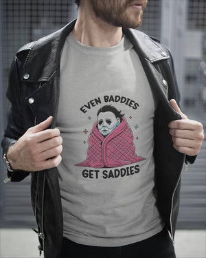 Even Baddies Get Saddies Unisex T-Shirt, Horror Movies Fan Gift, Halloween Gift