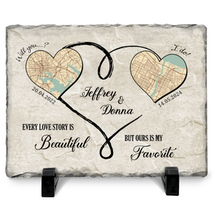 This unique Ours Is My Favorite Special Day Anniversary Gift For Couple Custom Map Photo Slate is the perfect sentimental gift to celebrate a couple’s anniversary. It features a custom map design showcasing the special places where you got engaged and married, commemorating the significant locations where your love story began and blossomed.