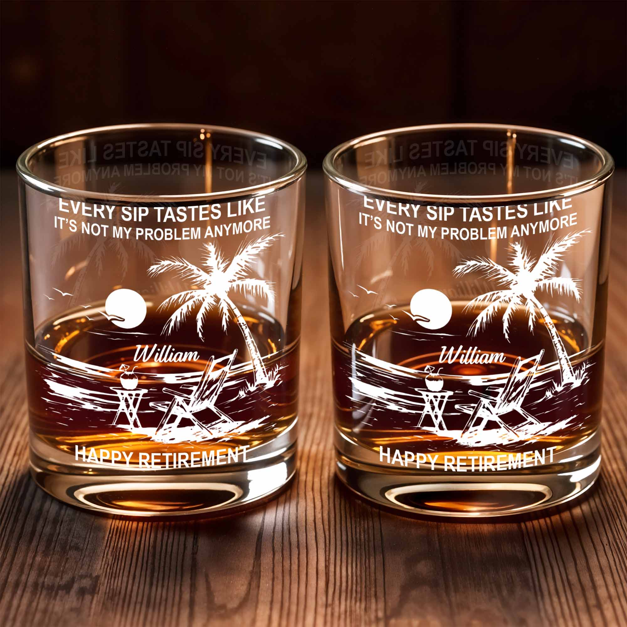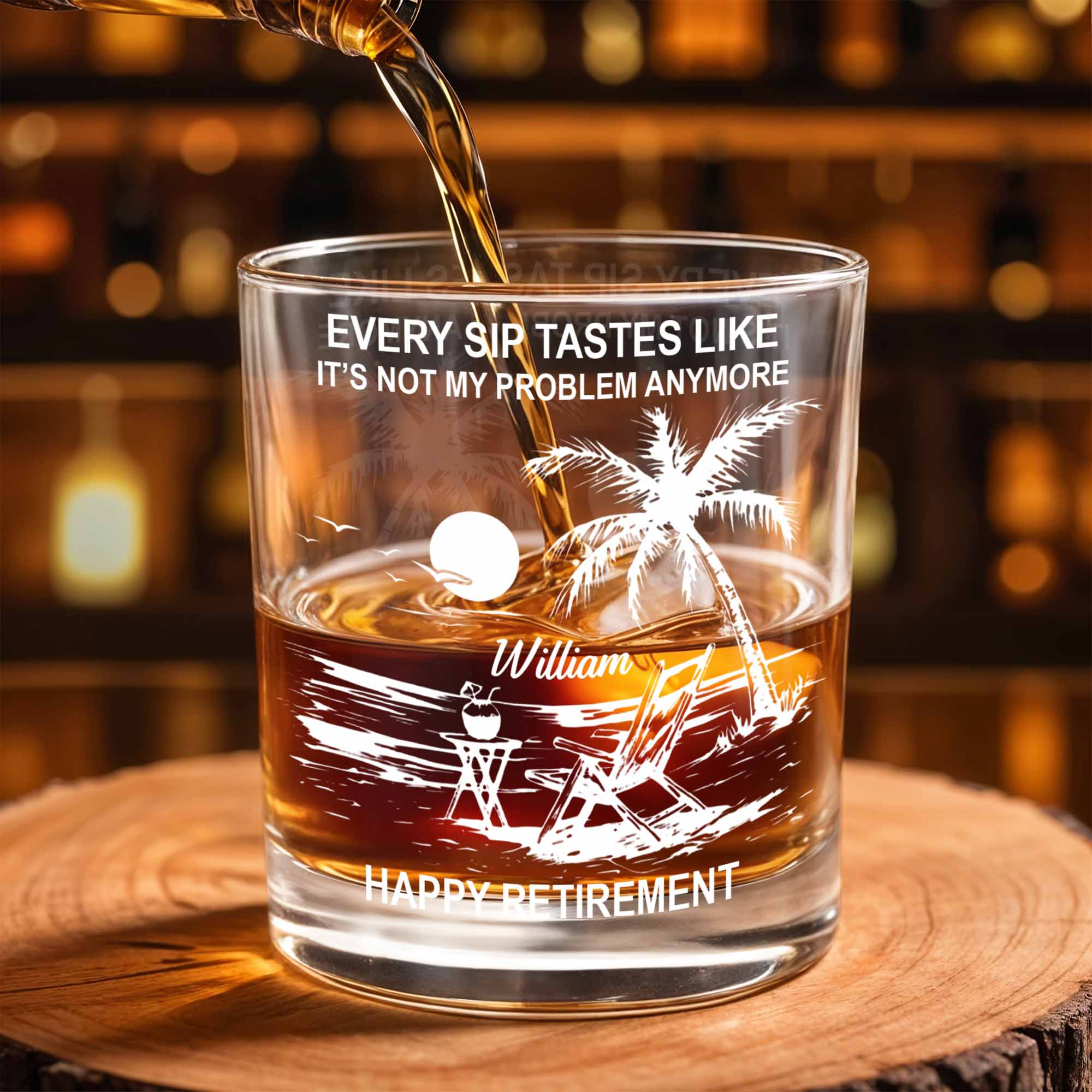 Every Sip Tastes Like Happy Retirement, Custom Name Whiskey Glass, Gift For Retirees