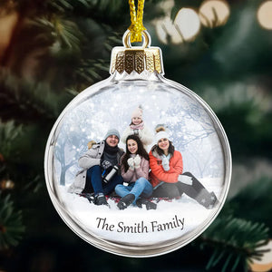 Family Christmas Ball Upload Photo Acrylic Ornament, Personalized Family Ornament
