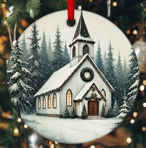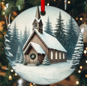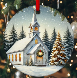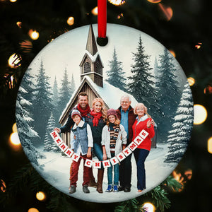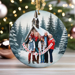 Family Christmas Church Personalized Ceramic Ornament, Personalized Christmas Gift
