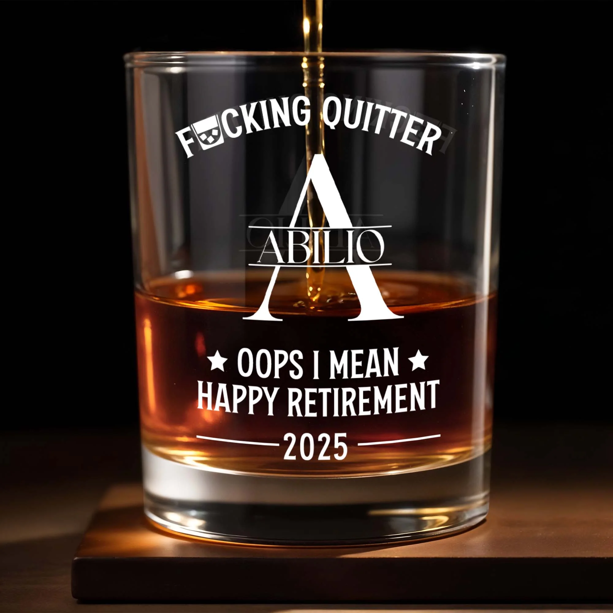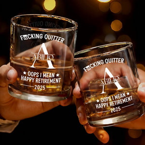 Fcking Quitter, Oops I Mean Happy Retirement, Custom Name Whiskey Glass, Gift For Coworkers