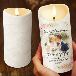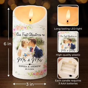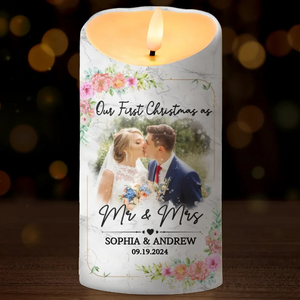 Custom Photo First Christmas As Mr And Mrs, Personalized LED Candle, New Wedding Gifts, Couple Valentines Gifts