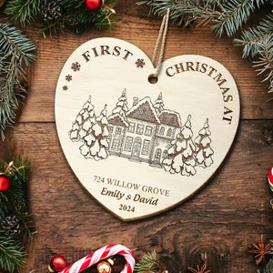 First Christmas In Our New Home Wood Ornament, Personalized Shaped Wooden Ornament