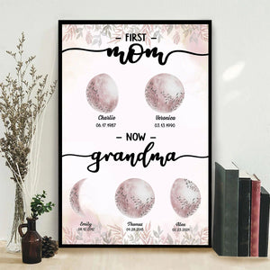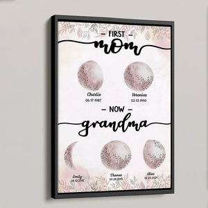 First Mom Now Grandma Custom Canvas Wall Art, Birth Moon Phase, Gift For Mom