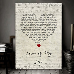 Freddie Mercury Love Of My Life Script Heart Song Lyric Quote Music Art Print Canvas Print Frames