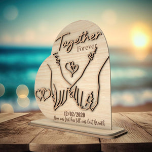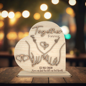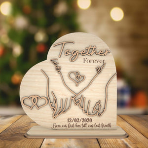 Together Forever Couple Holding Hands Wooden Sign, Pinky Promise Valentines Day Sign, Couple Anniversary Gifts