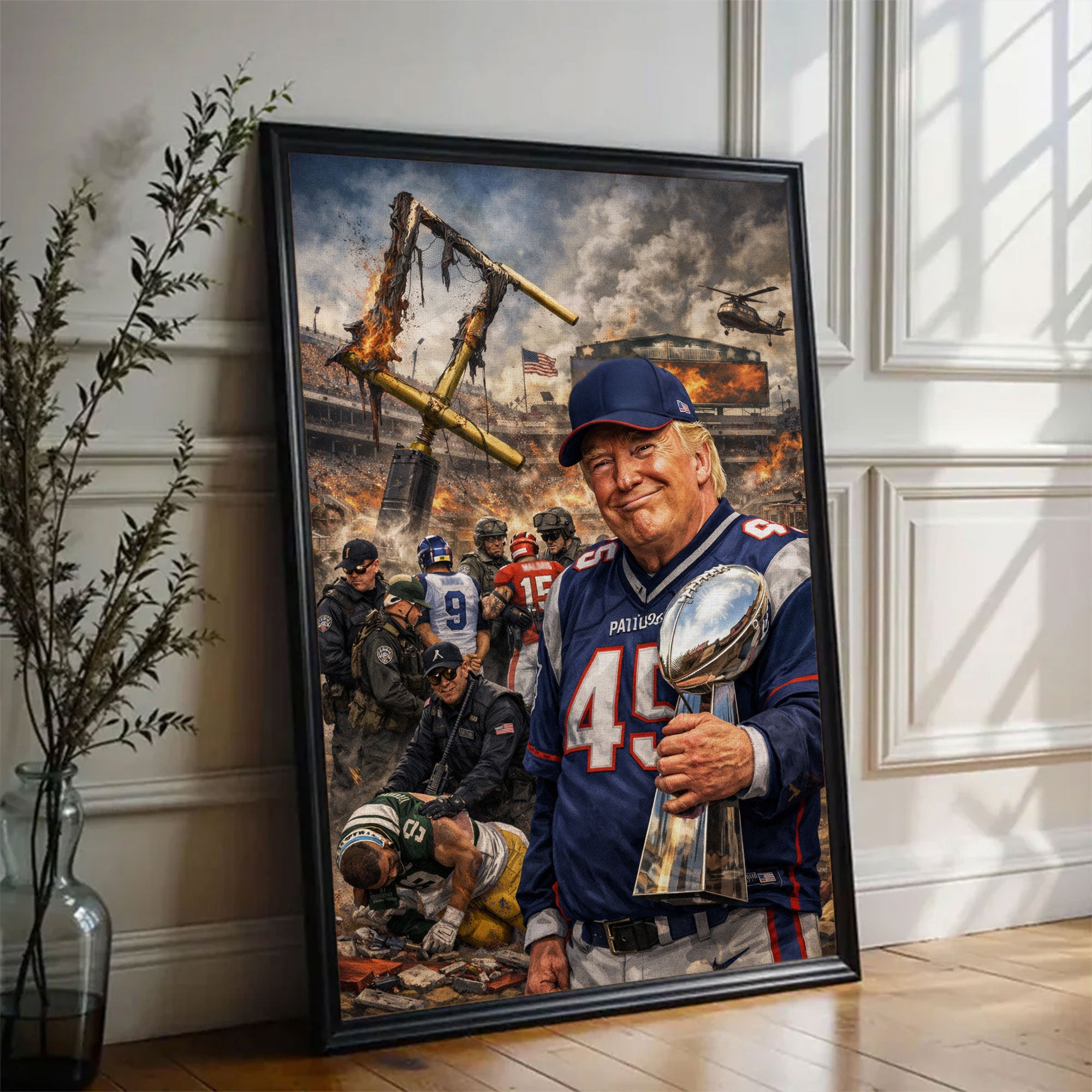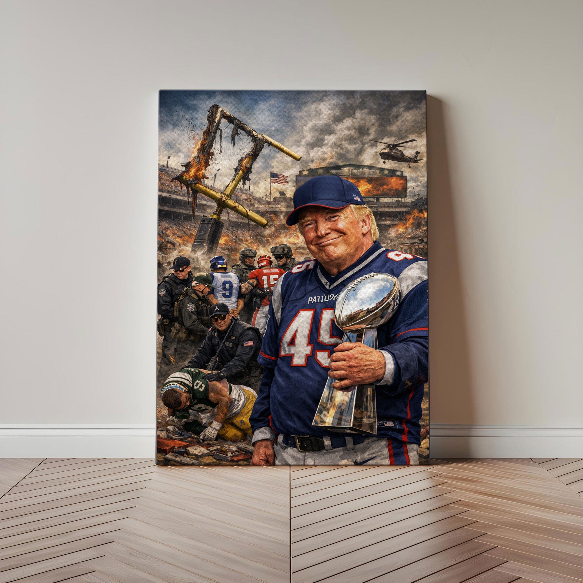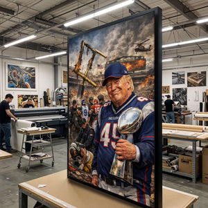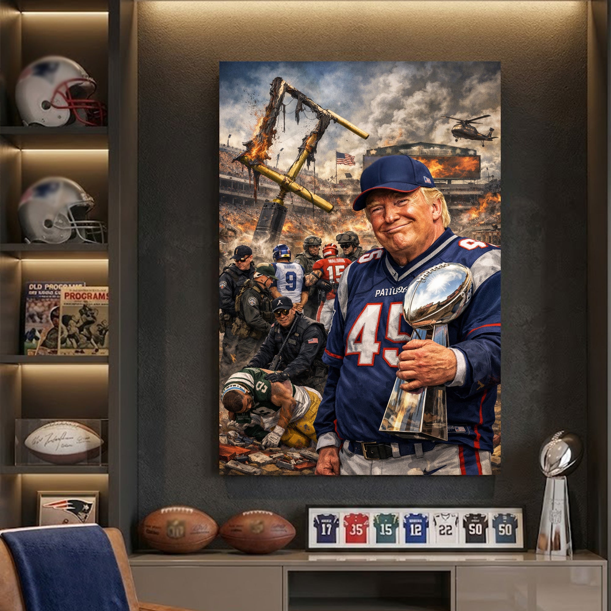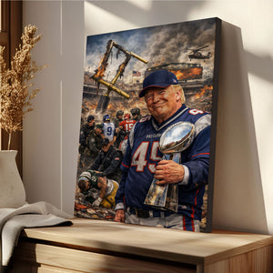 Funny Donald Trump Football Trophy Canvas Wall Art, American Football League Gift Ideas For Football Fans