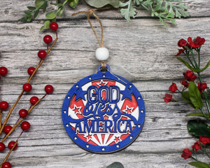 God Bless America, Patriotic Ornament, America Christmas Ornament, 3-Layer Wooden Ornament